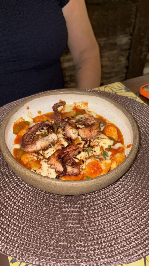 O restaurante se apresenta como uma cozinha italiana contemporânea, e de fato há boa variedade de massas, como espaguete e nhoque, acompanhadas de molhos pesto, pomodoro e outros clássicos. No entanto, a proposta italiana não se traduz plenamente no sabor. Faltam aqueles temperos característicos e a identidade marcante que remetem à culinária da Itália. O resultado é uma fusão interessante, mas que acaba soando mais como uma boa cozinha internacional do que como um autêntico restaurante italiano.